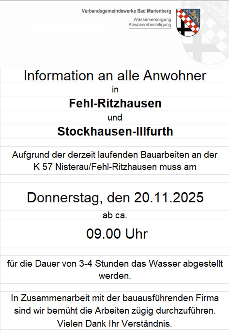 An alle Anwohner in Fehl-Ritzhausen und Stockhausen-Illfurth