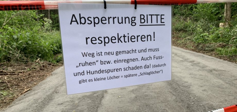 Trotz Absperrungen gehen leider immer wieder „Uneinsichtige“ über die frisch gemachten Wege. Z.T. mit Hunden, die lustig um den Besitzer herum springen und dabei natürlich kleine Löcher in das frische Profil bringen.